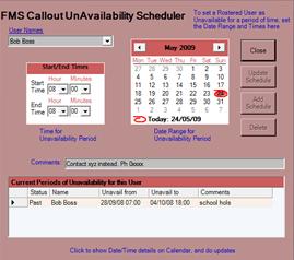 FMS also features a built in Call Roster, that rotates automatically, and includes an automated Availability Calendar